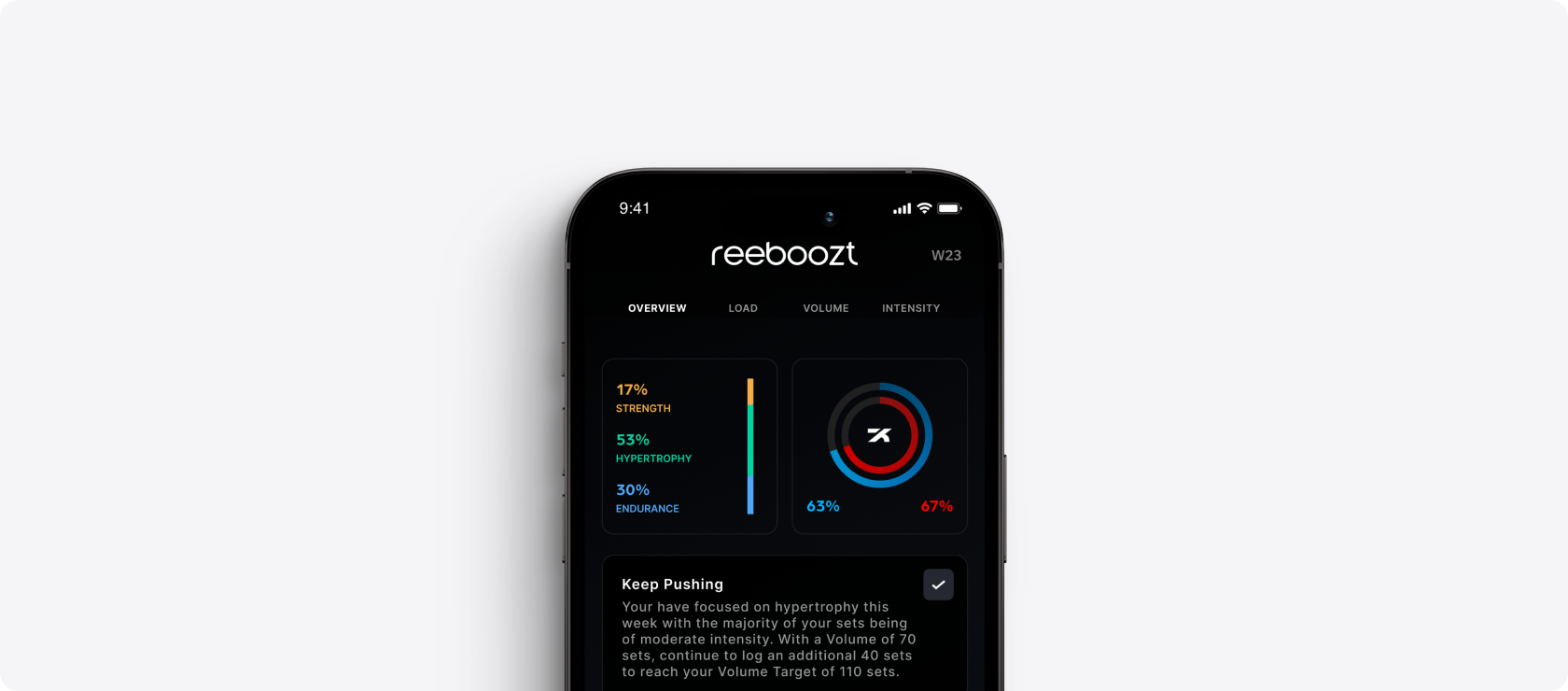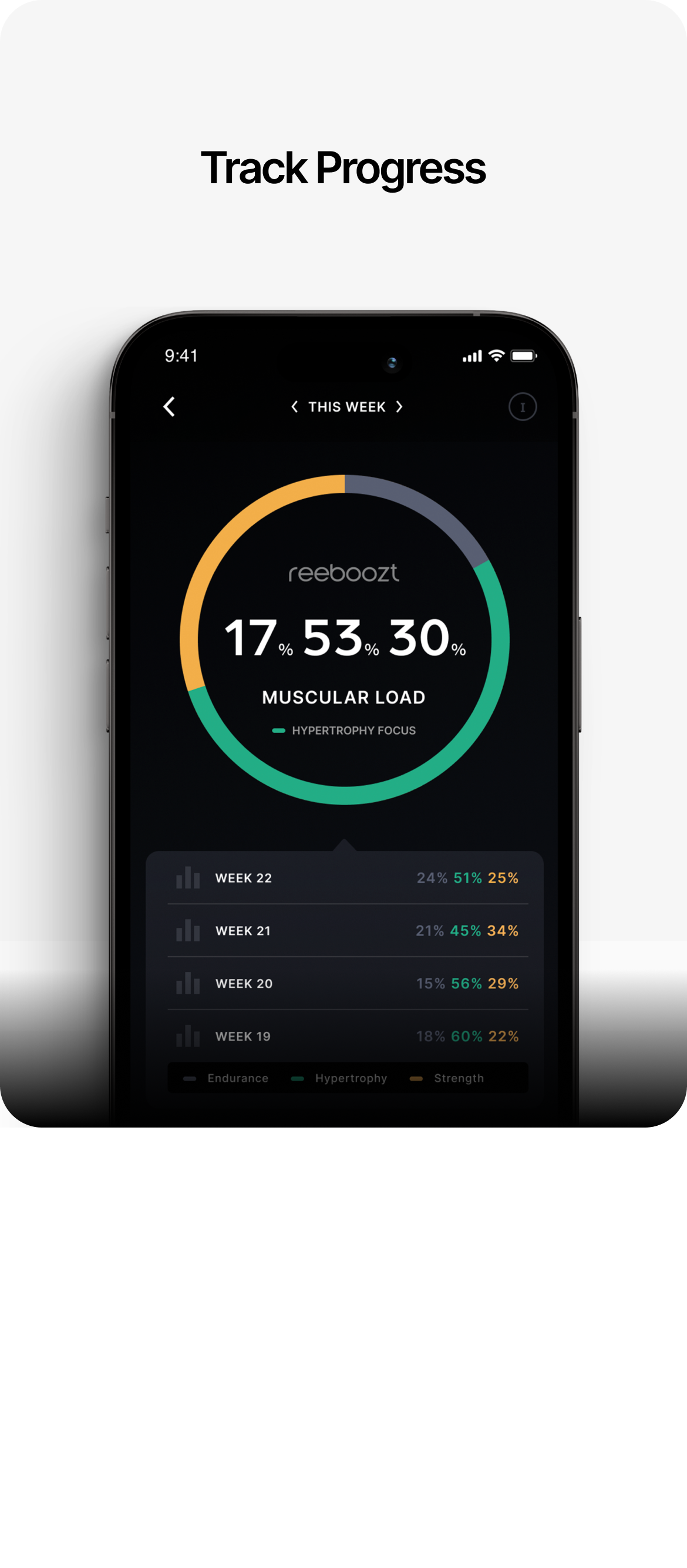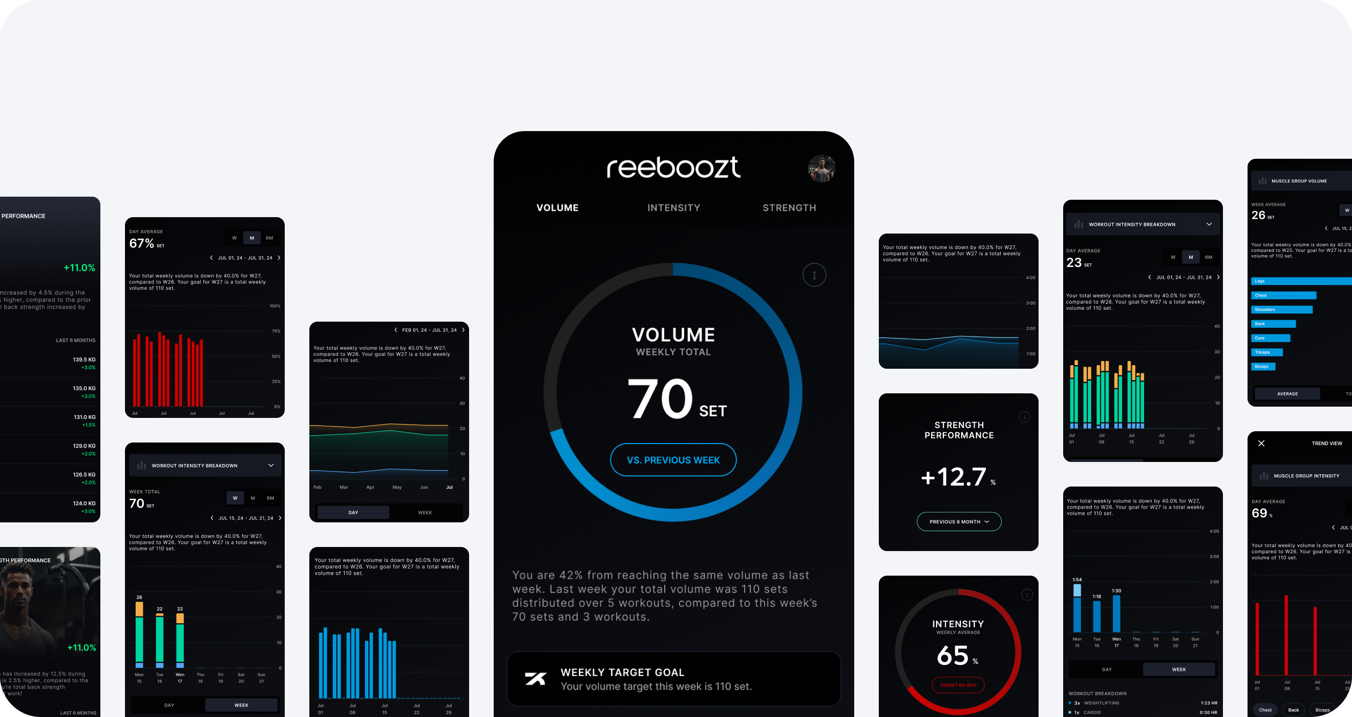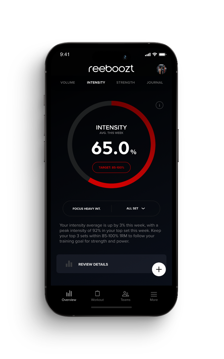 With key metrics across volume, intensity, and muscular load, reeboozt gives you a complete view of your workout performance — so you can make smarter decisions every day.